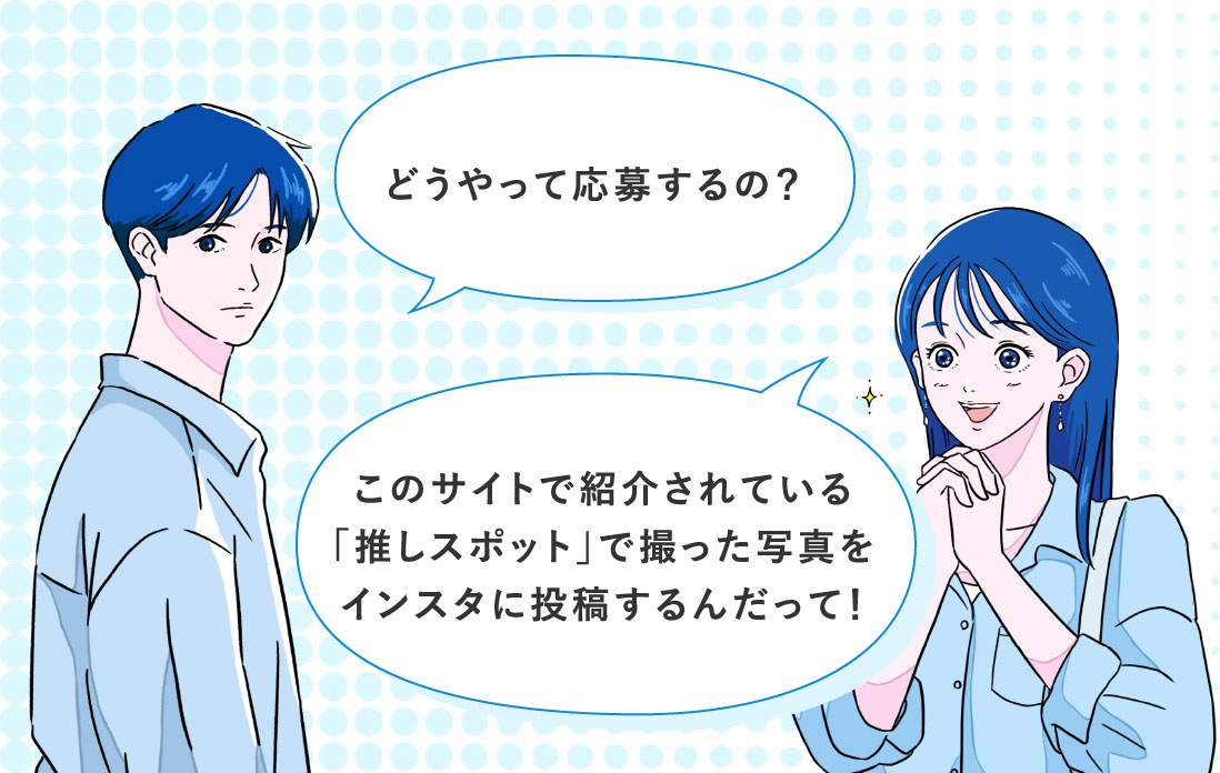 鹿児島推しの旅サイト“推しと私と鹿児島と。” (https://oshitabi.pref.kagoshima.jp/)内に掲載されている「推しの旅スポット」にて、お気に入りの1枚を撮影してください。